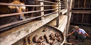 Foto internet: civetas enjaulados, sendo recolhidas suas fezes.